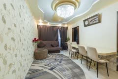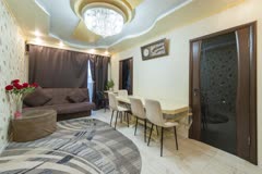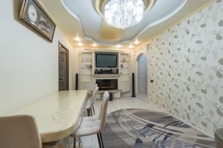 Квартира представлена в отличном состоянии после качественного ремонта, выполненного профессиональными мастерами. Интерьер оформлен стильно, используется качественная отделка и надёжная сантехника. Здесь созданы все условия для комфортного семейного быта: кухня оборудована необходимой техникой, комнаты просторные и светлые