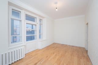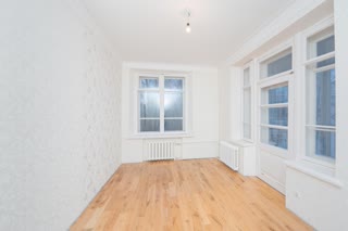 Классическая "сталинка" с высокими потолками (более 3-х м), толстыми кирпичными стенами, большими оконными проемами, панорамными окнами.