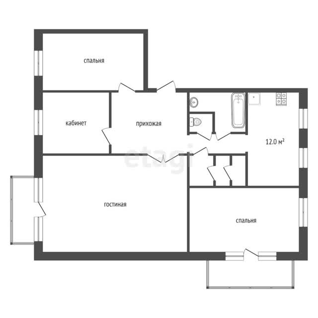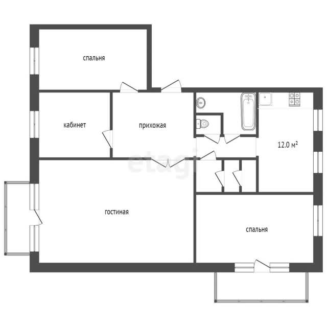 4 просторных жилых комнаты. Большая удобная прихожая. 2 балкона. 3 сан.узла (туалет, душевая, ванная комната). Кухня.