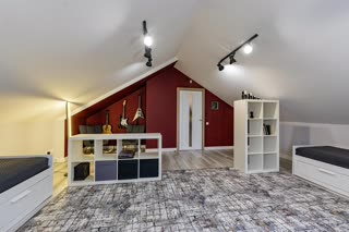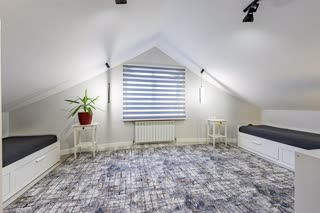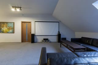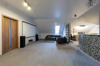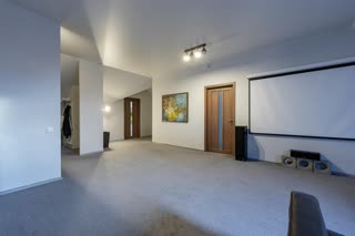 - 3 этаж: просторная комната, зал для отдыха с домашним кинотеатром, кабинет, санузел, гардеробная.